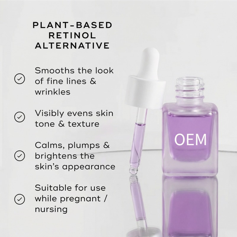 레티놀의 자극 없이 순한 식물성 탄력 세럼으로 주름을 완화하고 피부 탄력을 강화해 줍니다. 바쿠치올과 시그널 펩타이드가 함께 작용하여 피부 탄력을 개선하며, 가벼운 제형으로 빠르게 흡수됩니다. 민감성 피부 및 레티놀을 처음 사용하는 분들에게 적합합니다. 박사급 연구진과 GMPC 인증 클린룸을 기반으로 제작되었습니다. 포뮬러, 패키징, 향, 로고 등 모든 것을 맞춤 제작해 드립니다. 최소 주문 수량(MOQ)이 적고, 샘플 제공 기간도 15일로 빠릅니다. 미국, 독일, 중동의 유명 브랜드들이 신뢰하는 제품입니다.