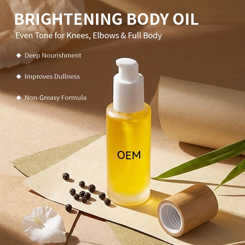 빠르게 흡수되는 브라이트닝 바디 오일로, 번들거림 없이 칙칙함을 개선하고 피부톤을 고르게 가꿔줍니다. 나이아신아마이드와 비타민 C 유도체를 함유하여 얼굴과 몸에 자연스럽고 촉촉한 윤기를 선사합니다. 박사급 연구 개발팀과 GMPC 인증 클린룸에서 생산되었습니다. 최소 주문량(MOQ)이 적고, 빠른 샘플링이 가능합니다. 브랜드만의 포뮬러와 패키지로 출시해 보세요. 클린 브라이트닝 바디 오일을 선보이고 싶으신가요? 포뮬러, 패키지, 최소 주문량(MOQ)에 대해 상담해 보세요. 15일 이내에 샘플을 받아보실 수 있습니다.