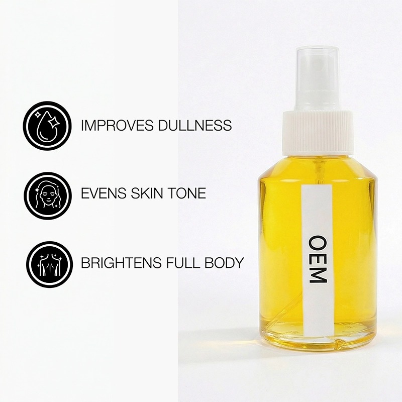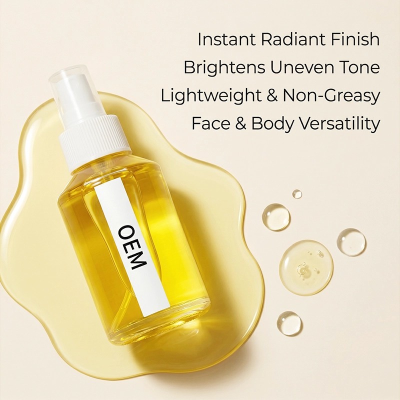 빠르게 흡수되는 브라이트닝 오일로, 칙칙한 피부에 자연스러운 광채를 더하고 꾸준히 사용하면 고르지 않은 피부톤을 개선해줍니다. 나이아신아마이드와 비타민 C 유도체를 함유하여 가볍고 끈적이지 않으며 얼굴과 몸 모두에 사용 가능합니다. 박사급 연구 개발팀과 GMPC 클린룸에서 생산됩니다. 최소 주문 수량(MOQ)이 적고 빠른 샘플링이 가능합니다. 고객님의 포뮬러와 패키지에 맞춰 제작해 드립니다.