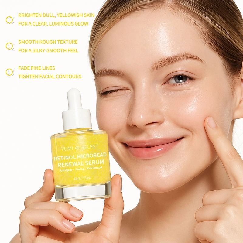 저희 레티놀 마이크로비드 리뉴얼 세럼은 혁신적인 마이크로캡슐화 기술을 적용한 고효능 안티에이징 스킨케어 제품입니다. 레티놀, 프로-실란, 콜라겐 펩타이드 및 다양한 진정 성분을 함유하여 피부 탄력 개선, 주름 완화, 미백, 보습 및 피부 장벽 강화 효과를 제공합니다. 모든 피부 타입에 적합한 가벼운 제형이며, OEM/ODM 맞춤 제작 서비스도 지원합니다.