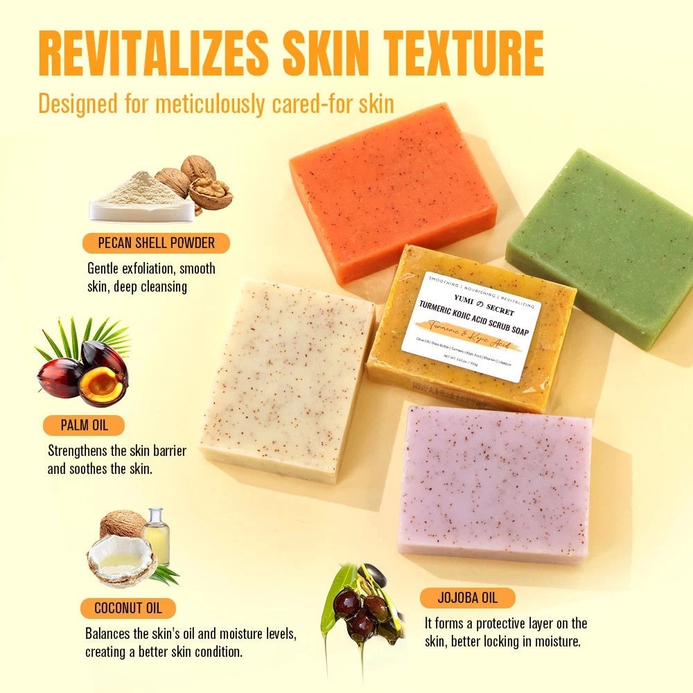 이 수제 허브 강황 비누는 천연 비건 성분과 강력한 미백 및 여드름 방지 효과를 결합하여 모든 피부 타입에 순하게 매일 세정하면서 칙칙함을 효과적으로 개선해 줍니다. CPNP 및 HALAL 인증을 받은 이 고체 강황 비누는 OEM 프라이빗 라벨 서비스로 제공되며, 브랜드에 맞춘 맞춤형 포장 옵션도 이용 가능합니다.